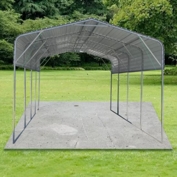 This parking shed provides excellent coverage at a fraction of the cost of building a permanent garage. -