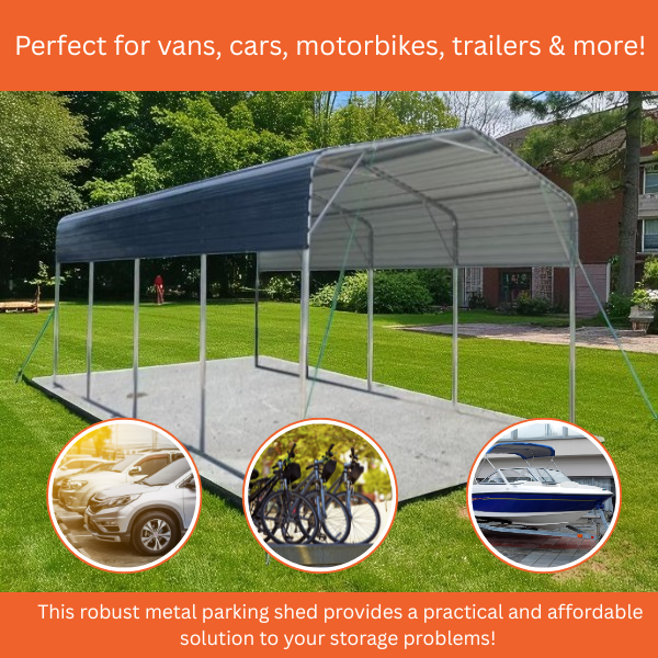 Secure and protect your vehicle year-round with this durable 11 × 19 ft metal parking shed, engineered to withstand Ireland’s wet, windy, and unpredictable climate. Perfect for cars, vans, motorbikes, trailers, boats, or jet-skis, this robust metal parking shed provides a practical and affordable solution for outdoor vehicle storage.