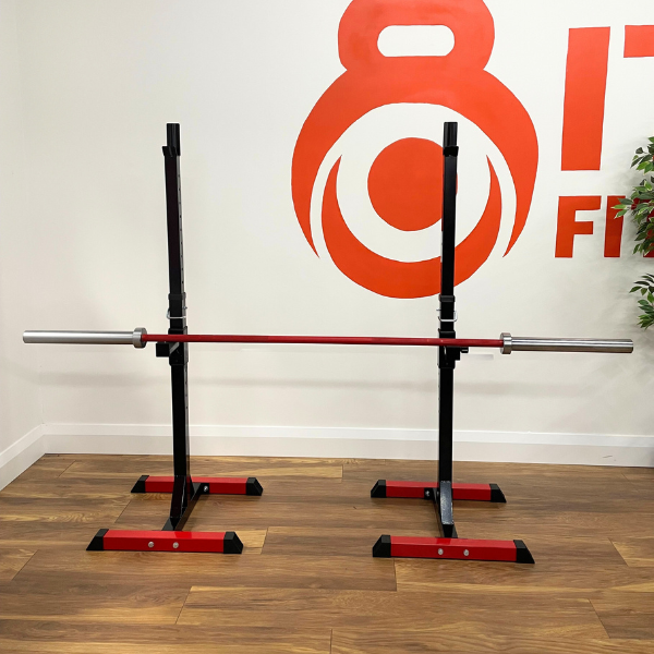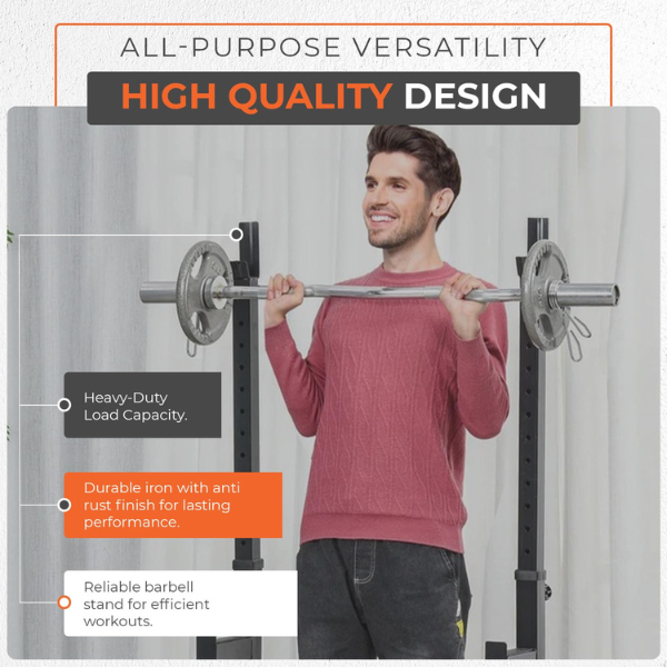 Please note: To keep the focus on the primary equipment, the barbell or weight plates pictured are not included with the purchase of the adjustable barbell support rack. This listing is exclusively for the high-quality, adjustable support structure itself.