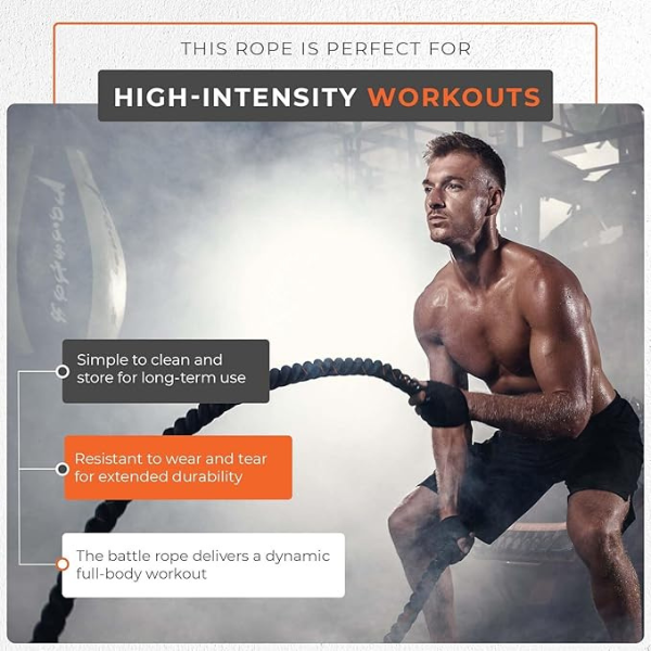 ✅ Durable Construction – Crafted from high-quality materials, the battle rope is built to withstand even the most intense workouts, ensuring long-lasting performance.