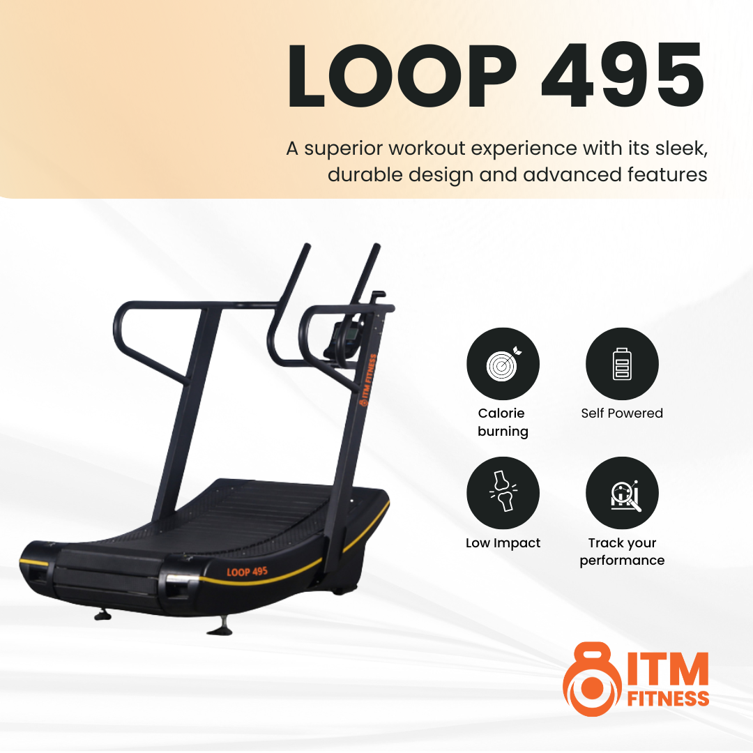 Elevate your fitness routine with the Loop 495 Curved Treadmill. Its unique curved design, customizable resistance, and comprehensive tracking features make it an unbeatable choice for those serious about their workouts. Whether you’re looking to improve endurance, burn calories, or increase your running performance, this treadmill is your perfect fitness companion.
