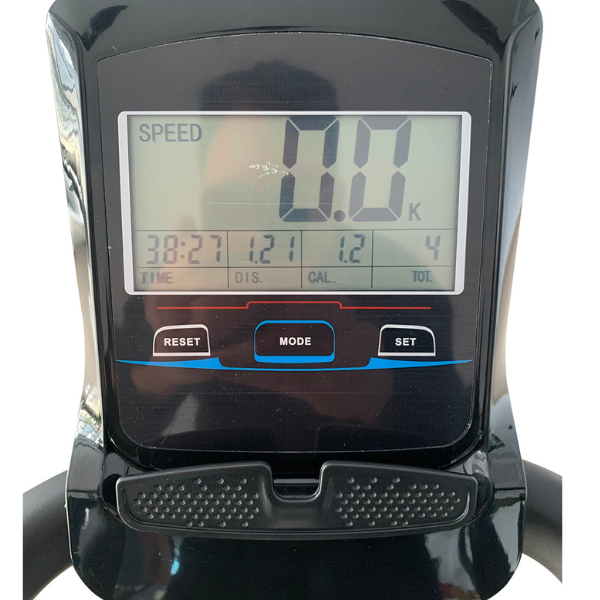 Track Your Progress: The screen display shows essential workout metrics, including Time, Speed, Calories (Cal), and Distance, helping you monitor your performance and stay on track with your fitness goals.