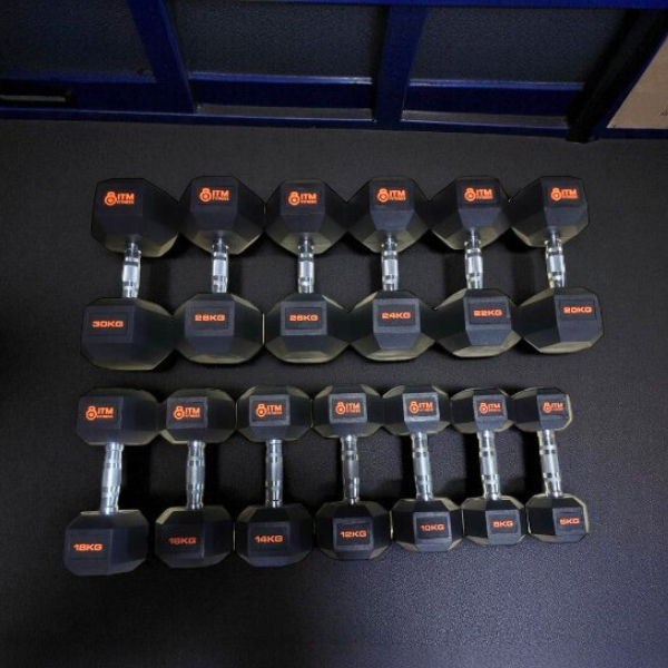 ITM FITNESS Rubber Hex Dumbbells – Built for Strength, Control & Durability